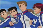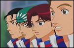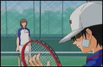 Kawamura just shook his head and didn't mind Kikumaru any more. Inui suddenly called to the regulars that the last one who finishes the lap would be drinking his Deluxe Inui Penal-Tea. Again, Ryoma used Kawamura as a wind-break by handing him a racket and running behind him. The rest of the regulars however, tried their hardest to catch up with Ryoma and Kawamura.