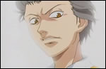 Sengoku managed to apologize to their coach, although he earned some earful because he lost to an injured person! Momoshiro was treated immediately for his cramp. Ryoma's match was coming up, Kawamura managed to get ahold of Ryoma and warned him never to go to the net since they don't know what Akutsu might do.
